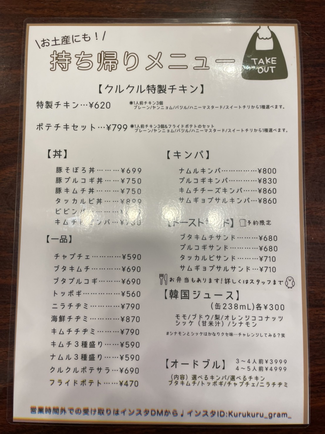 | 営業時間 | 17時〜22時(持ち帰り&営業) |