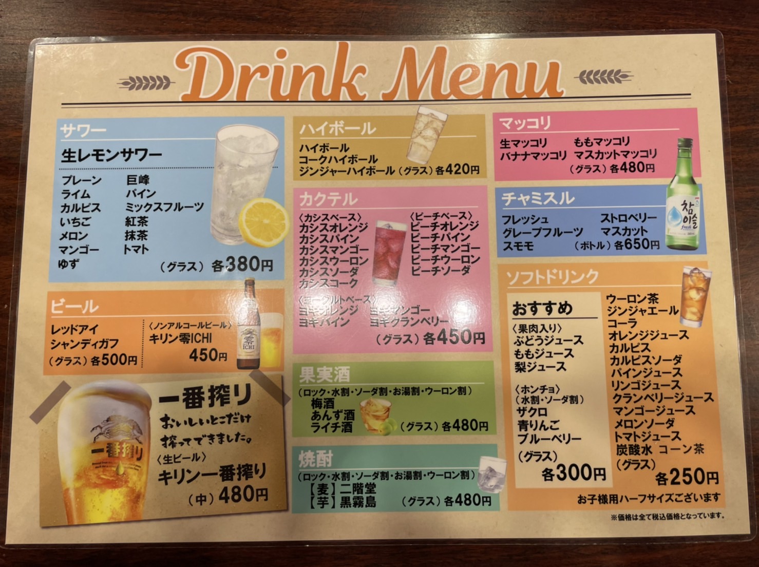 ・ソフトドリンク飲み放題…大人800円/子供680円