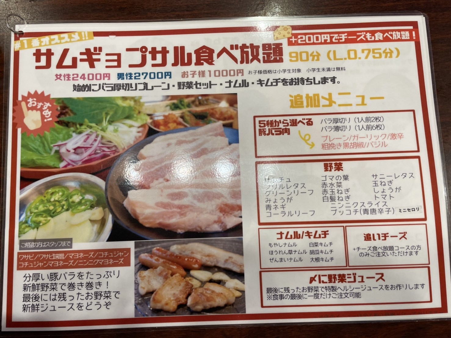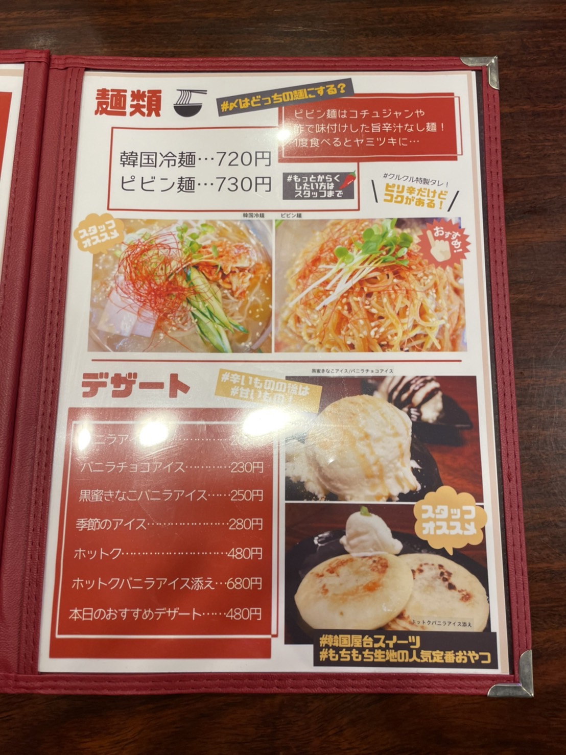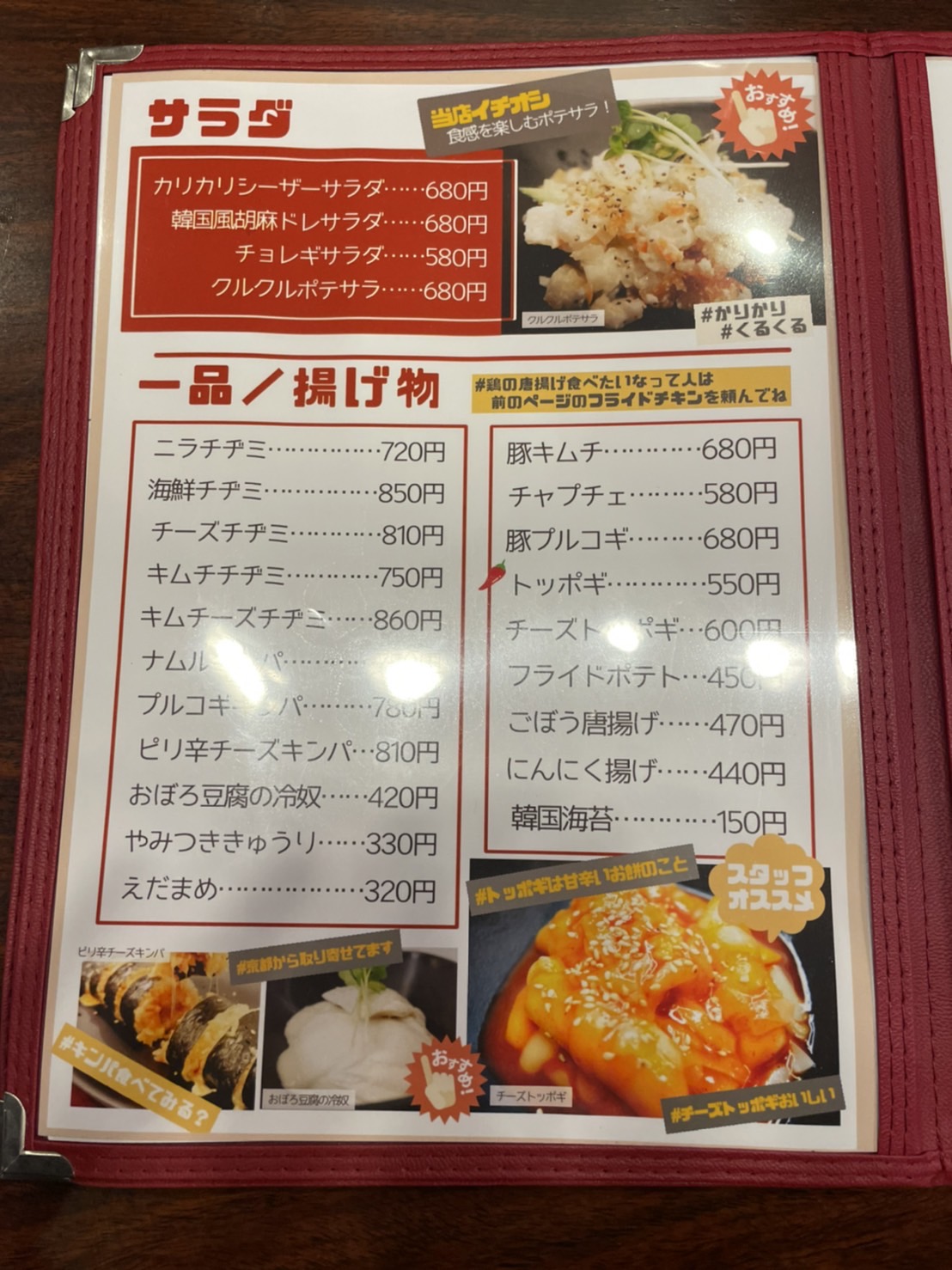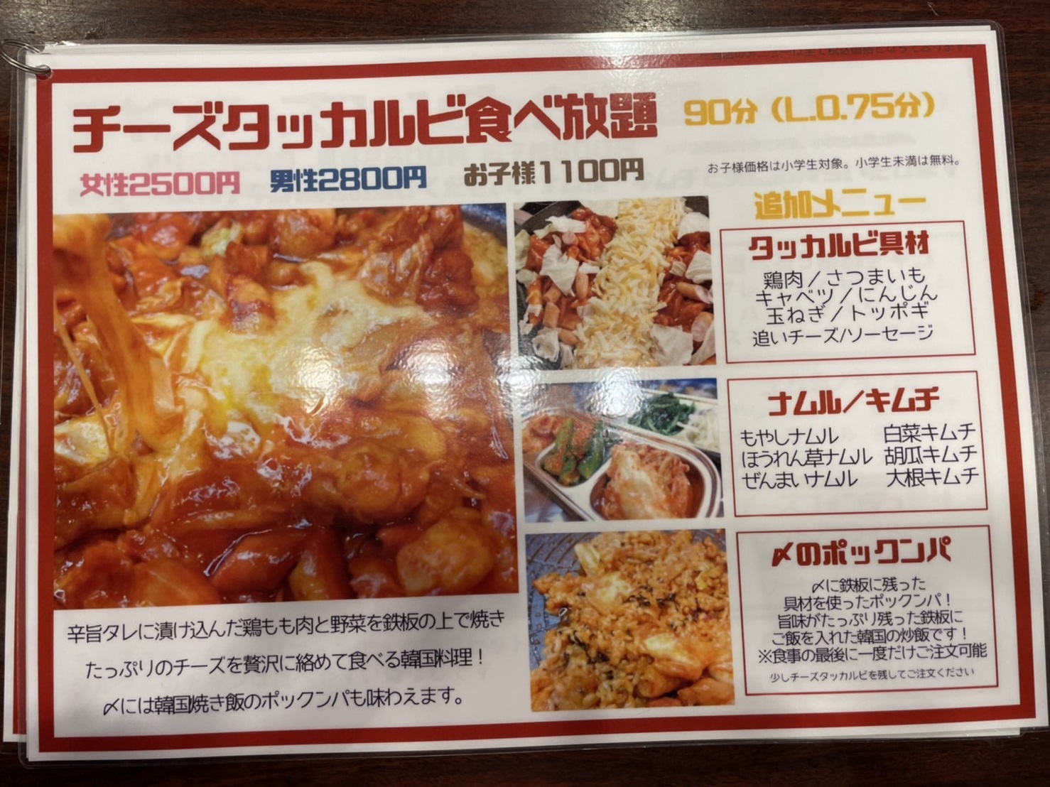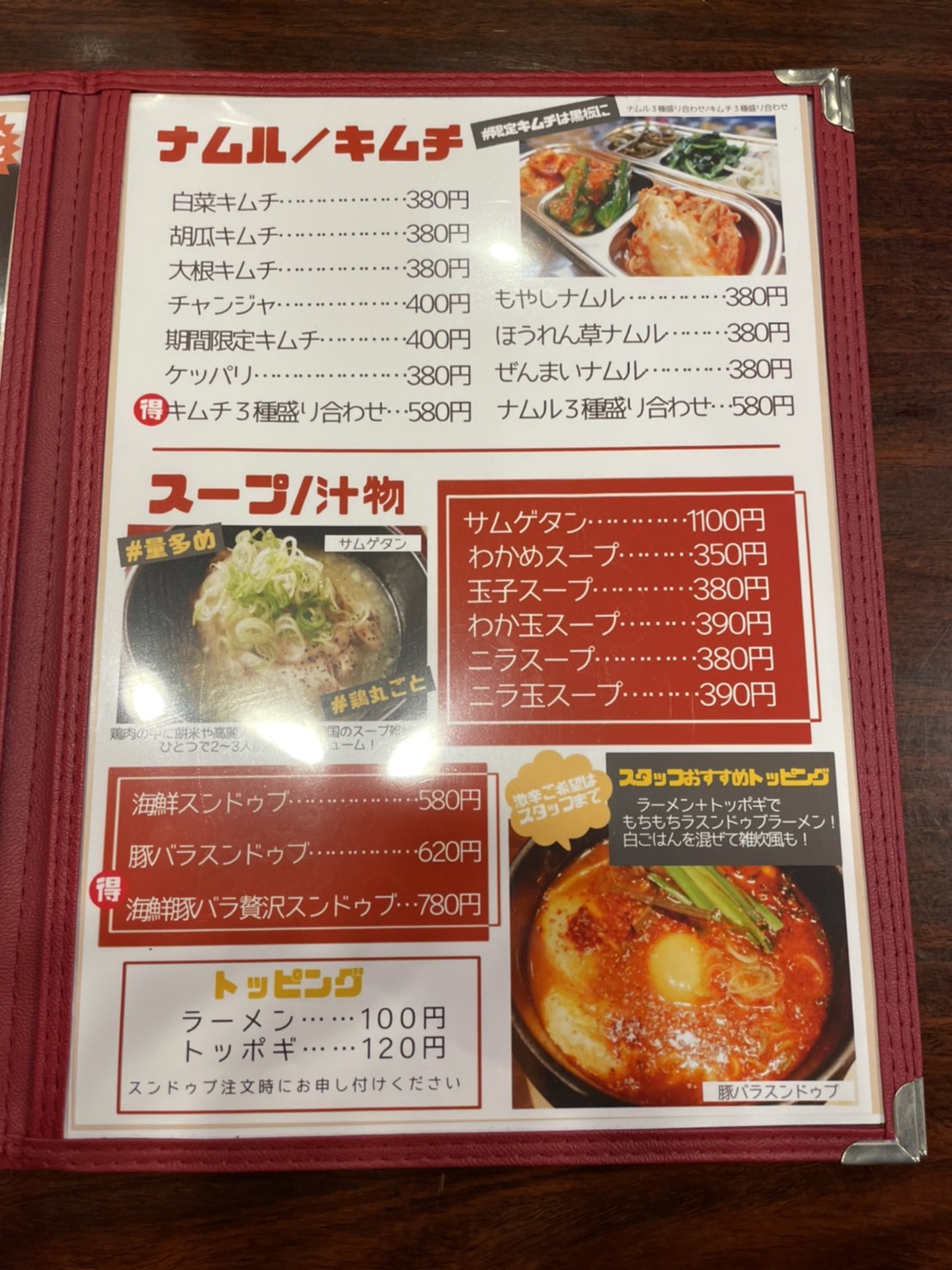 メニュー表はこんな感じです。メインの韓国料理は一通りありますね~