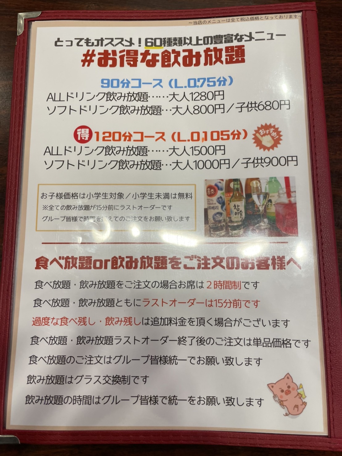 ・ALLドリンク飲み放題…大人1,280円