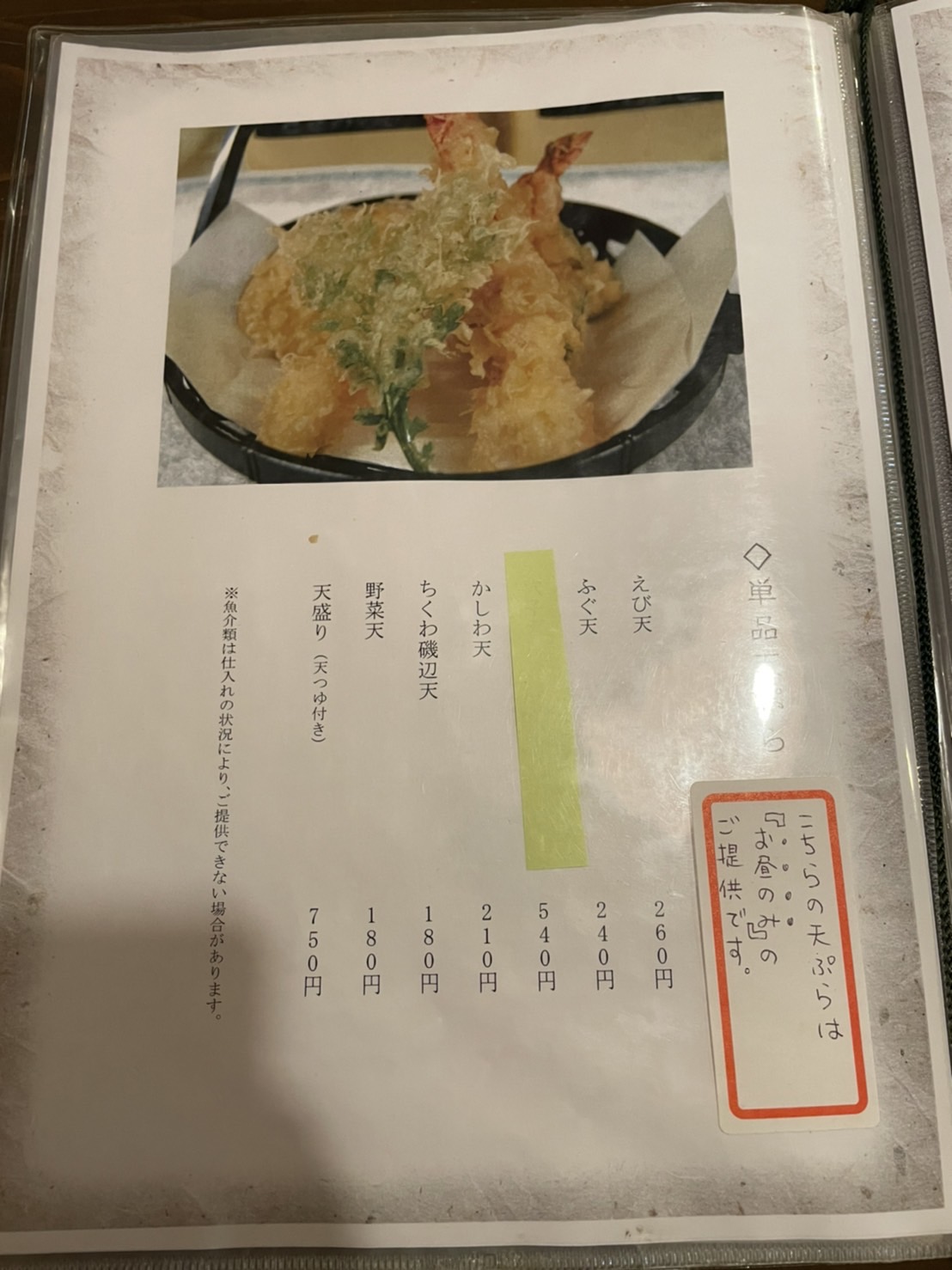 事前情報によると天ぷらがおいしいとのことで楽しみです…!